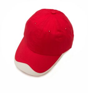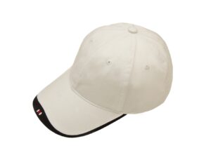 Gorras modelo Madrid de algodón con hebilla y ojillo de aluminio, biés y visera sandwich.