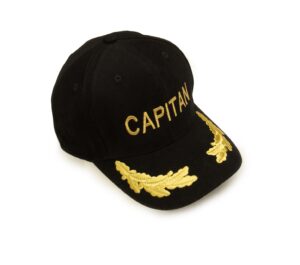 Gorra modelo Laurel. de gabardina Bull Denin 100% algodón con laureles bordados con hilo metálico. Marinos, militares, corredores.