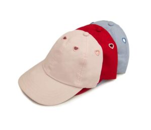 Gorra modelo Corazón Dry Fit. Diseño para chavas y niñas. Moda deportiva. Ajustador de velcro. Ojillos bordados de corazón