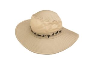 Sombrero Cazador Animalitos con Red. Cenefa estampada con animales nativos del Sur de América. Borda y personaliza con magnificos bordados.